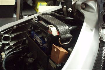 しかし面白い位置にバッテリーがあります…フレームヘッドの後ろってね。タンクを取らないとはずせない・・・・