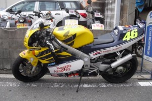 ぱぱ~ん君の話でここ数年前から 朝の通勤でバレンティーノロッシレプリカスーツ、ヘルメットを装備をしバイクはKSR・・・・ ちょっと違うやろ?? と言いたいルックスで出会う人がいるらしいが、 なかなか このMC28 NSR250R SE Evolution仕様の車両と出っくわさなかった・・・・