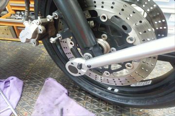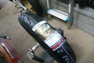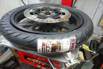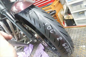 では時間も無いので早速思い出ブログを 常連様の頭文字MさんのKawasaki ゼファーχの整備の続きをです。今回もタイヤ交換の続きでブリヂストンS22の交換作業をアップしています 前後のタイヤ交換をして装着・・・タイヤバランスもとって完成 きれいですよね~~~~タイヤ前後交換が終われば次にチェーン交換作業をします・・・