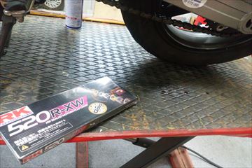 今回はチェーンの持ち込み作業で交換です 持ってきてくれたチェーンはRKの520R-XWって言うモデルです。これに交換となりました。