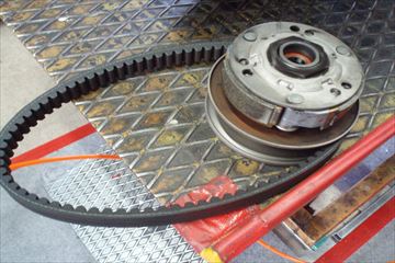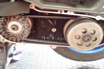 さて頭文字OさんのヤマハBW’s125XFiの整備でエアークリーナー関係 駆動系 ブレーキ系 オイル交換等の作業をしています。