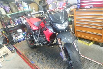 ただKSR-2 ノーマルじゃなくZ100だったかな?パーツふんだんに使われた車両で知人に渡していたらこのようになって帰ってきたってうれしいような悲しいような・¥・・・・・・ではメンテナンスは普通に乗れるようにしてくれ~~~ってことで依頼を受け引き取りに行きました。
