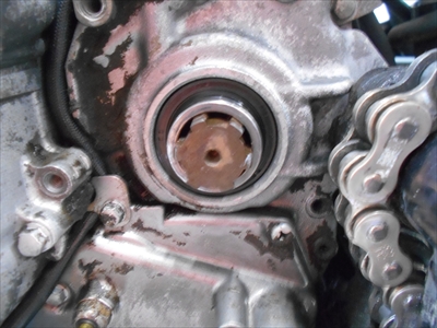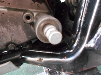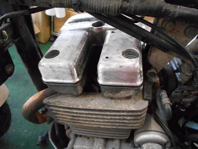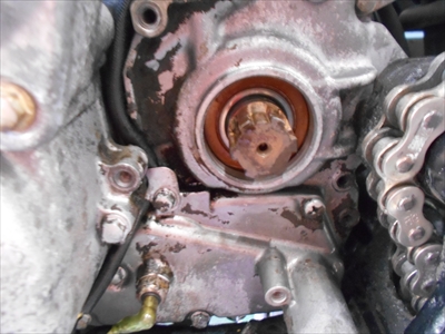 さて 頭文字Mさんのカワサキ スーパーシェルパのオイル漏れで ドライブスプロケットとヘッドカバーガスケットの交換をしています~